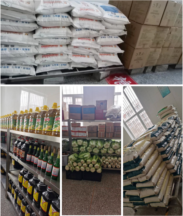 在封闭校园管理前夕,作为有多年管理经验的刘福军管理员,审时度势,准备充足粮、油等日常食品的储备,可以满足在校师生为期30天的需求。